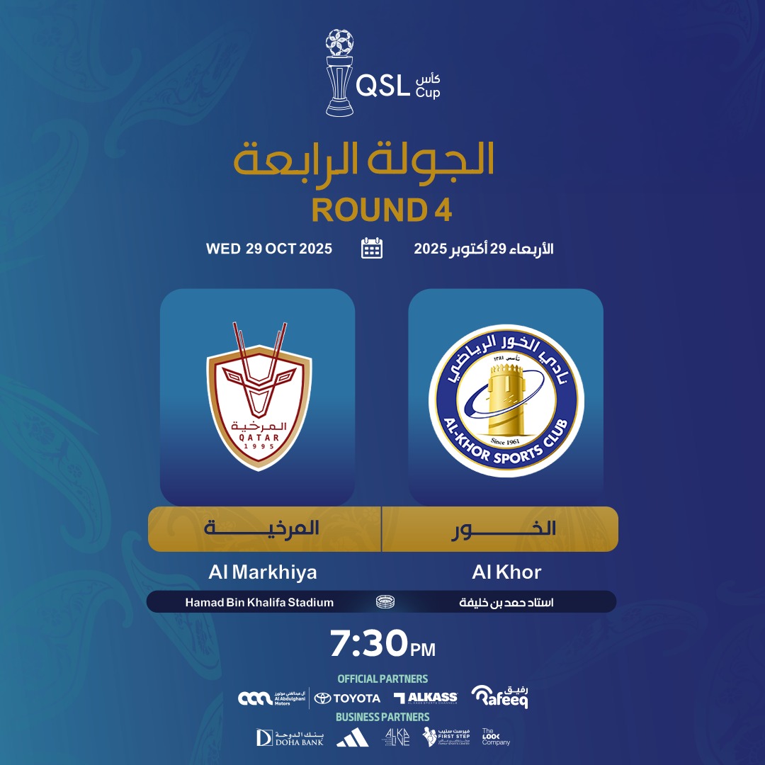 يواجه نادي قطر نظيره مسيمير في الخامسة والنصف مساء الثلاثاء 28 أكتوبر 2025 على استاد سعود بن عبد الرحمن بنادي الوكرة، ضمن منافسات الجولة الرابعة من بطولة كأس QSL للموسم الكروي 2025-2026 .