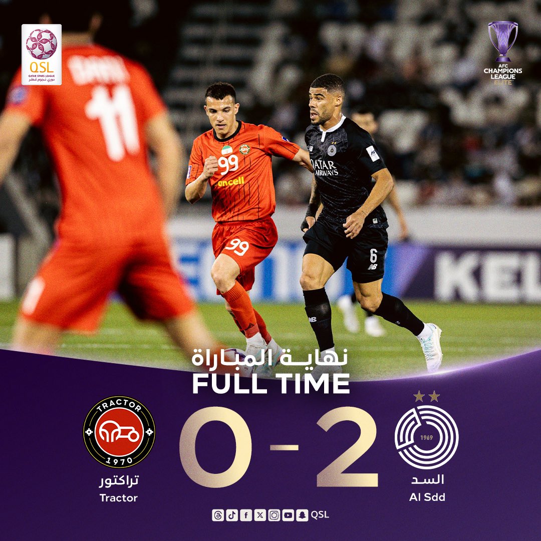 حقق السد الفوز بهدفين دون رد على تراكتور الإيراني، في المباراة التي جرت بينهما يوم الثلاثاء الموافق 10 فبراير 2026، على استاد جاسم بن حمد بنادي السد، لحساب الجولة السابعة من منافسات منطقة الغرب في دوري أبطال آسيا للنخبة 2025-2026.