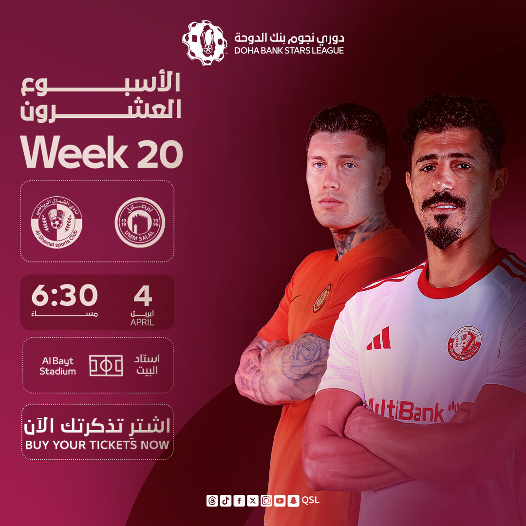 يشهد الأسبوع العشرون من دوري نجوم بنك الدوحة 2025- 2026، لقاء الشمال وأم صلال والذي سيسعى خلاله كل فريق لاقتناص النقاط الثلاث واستعادة الانتصارات مجددًا، حيث يلتقي الفريقين في تمام الساعة السادسة والنصف مساء يوم السبت الموافق 4 أبريل 2026.