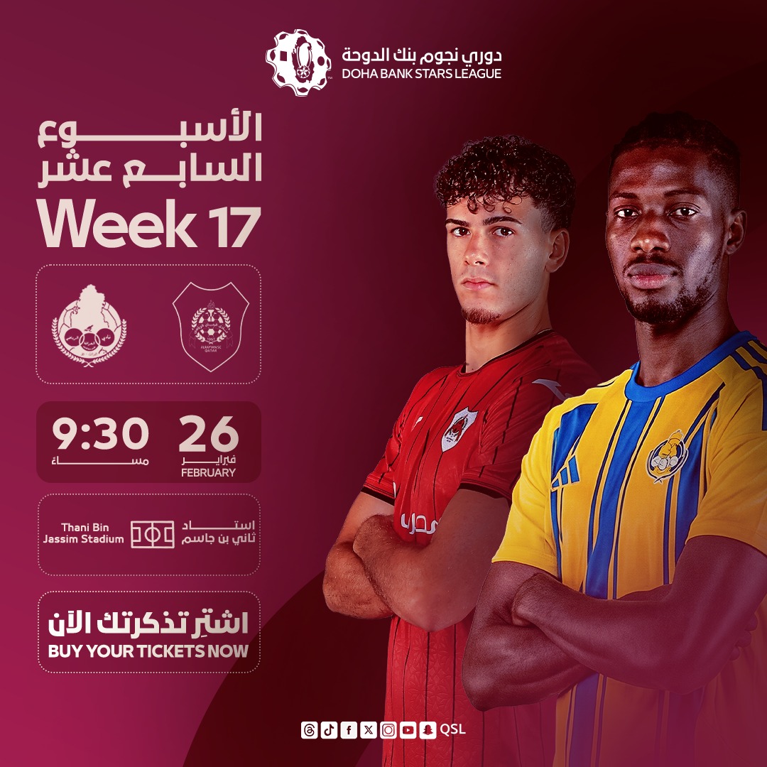Al Gharafa will host Al Rayyan in their Week 17 match of 2025-2026 season Doha Bank Stars League at the Thani Bin Jassim Stadium on Thursday, February 26, 2026. The kick-off is at 9.30pm.