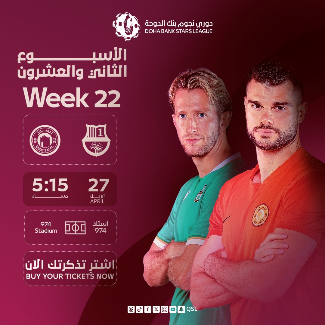 Khalifa International Stadium will stage the encounter between Qatar SC and Al Duhail in the 22nd and final round of 2025-2026 season Doha Bank Stars League on Monday, April 27, 2026. The kick-off is at 5.15pm.