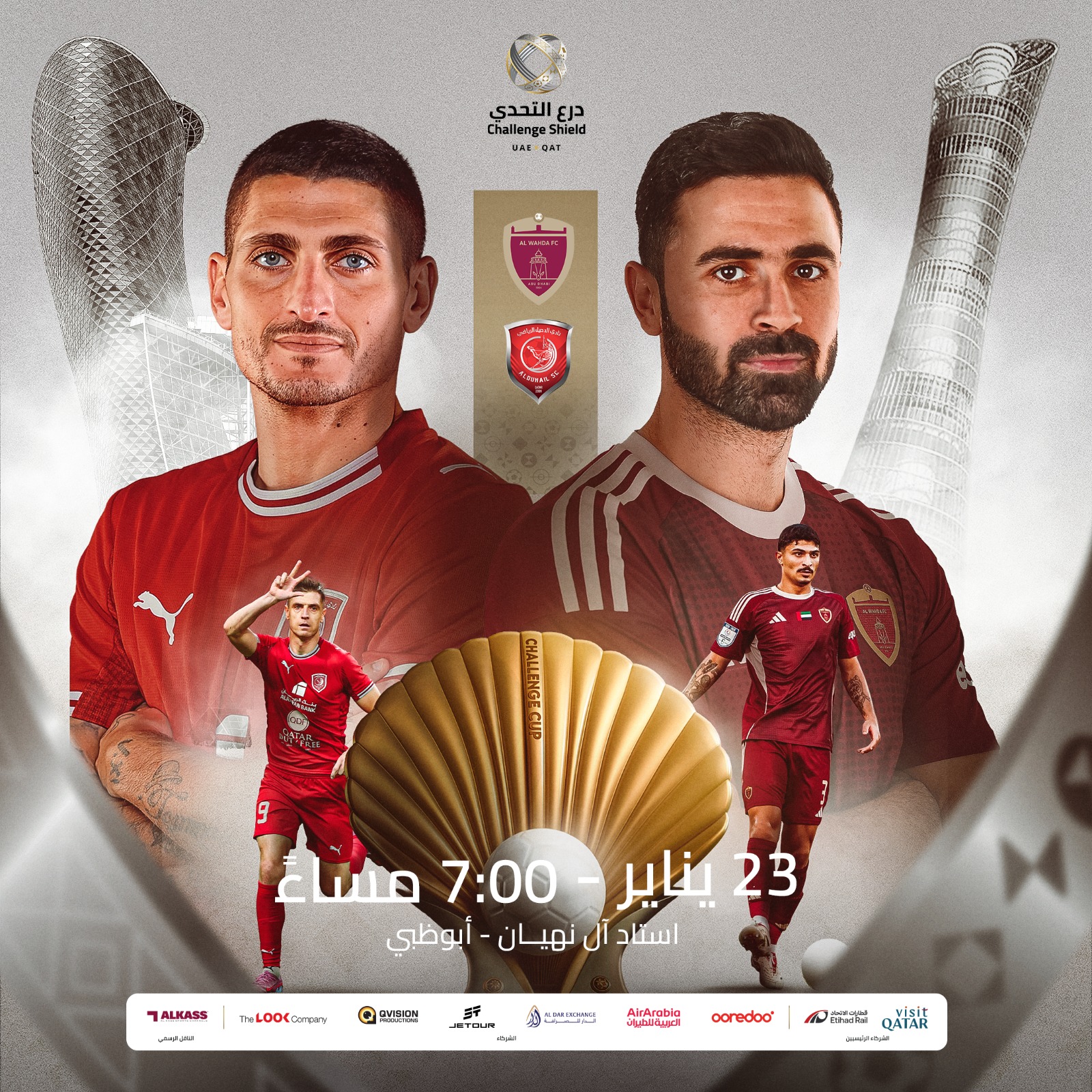 يستضيف استاد آل نهيان في أبوظبي، مساء الجمعة 23 يناير 2026 مواجهة تجمع بين الدحيل والوحدة الإماراتي، في منافسة قوية على الظفر بدرع التحدي للسوبر القطري الإماراتي في نسخته الثالثة، وتنطلق المباراة الساعة السابعة مساءً بتوقيت الدوحة، الثامنة بتوقيت الإمارات.
