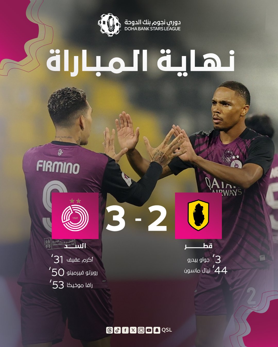 ووصل السد بهذا الانتصار للنقطة 23، فيما توقف قطر عند 17 نقطة.