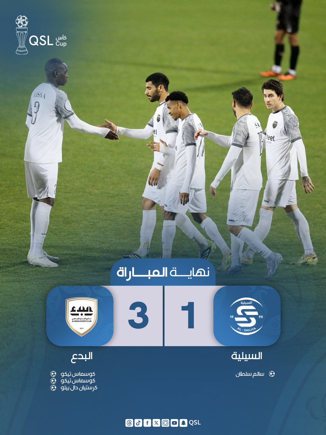 تأهل البدع لربع نهائي كأس QSL بعد الفوز على السيلية 3-1، في المرحلة الإقصائية من البطولة، وذلك خلال المباراة التي أقيمت بينهما الثلاثاء 27 يناير 2026.