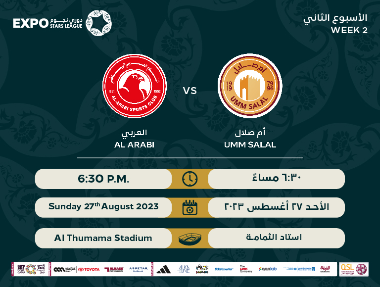 يدشن الدحيل ومعيذر مواجهات الجولة الثانية من منافسات دوري نجوم إكسبو للموسم الكروي 2023-2024، عندما يلتقيان في السادسة والنصف مساء الجمعة 25 أغسطس 2023 على استاد خليفة الدولي.