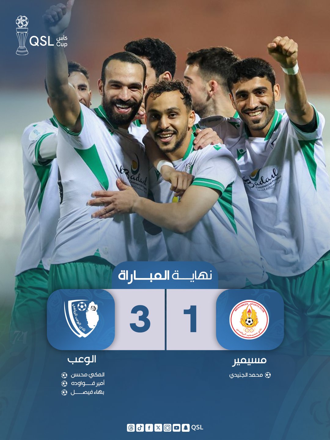 تأهل الوعب للدور ربع النهائي من بطولة كأس QSL للموسم 2025-2026، بعد تغلبه بثلاثة أهداف مقابل هدف على مسيمير في المواجهة التي جمعتهما يوم الإثنين الموافق 26 يناير 2026 على استاد الشمال، ضمن المرحلة الإقصائية للمسابقة.