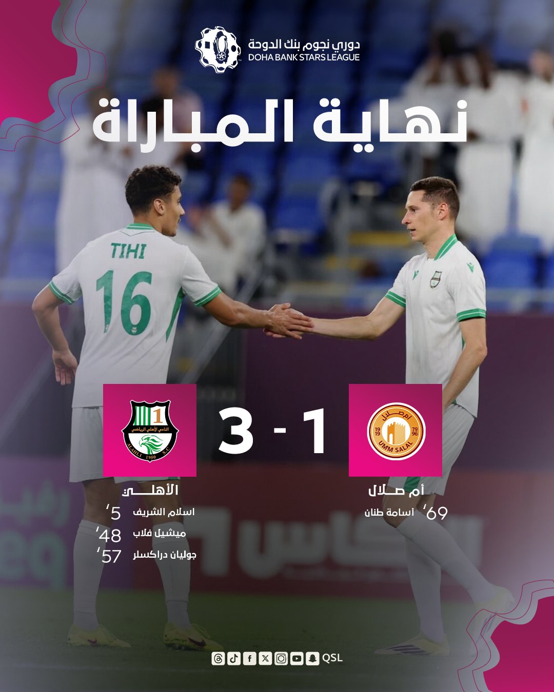 وبهذه النتيجة، أنهى الأهلي موسمه بانتصار، في حين ودّع أم صلال دوري الأضواء بعد موسم صعب لم يتمكن خلاله من تحقيق النتائج التي تضمن له البقاء.