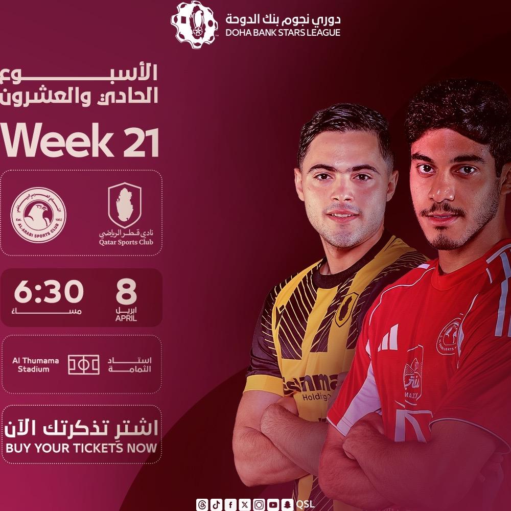 دوري نجوم بنك الدوحة – الأسبوع الحادي والعشرون: العربي vs نادي قطر