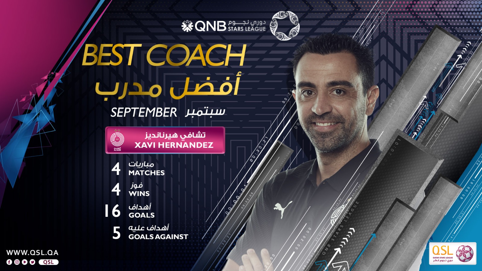 Xavi Hernandez of Al Sadd has been named as the 2021-2022 season QNB Stars League’s Best Coach for the month of September, 2021, according to STATS, the official statistics and figures provider for the Qatar Stars League.